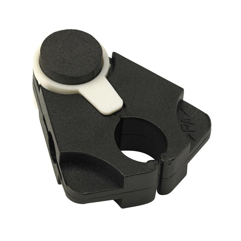 L'accroche canne est un accessoire qui se clippe simplement sur la canne. Il permet de placer la canne verticalement au bord d'une table ou d'une étagère. Il suffit de poser l'accroche canne à plat grâce à l'embout antidérapant.